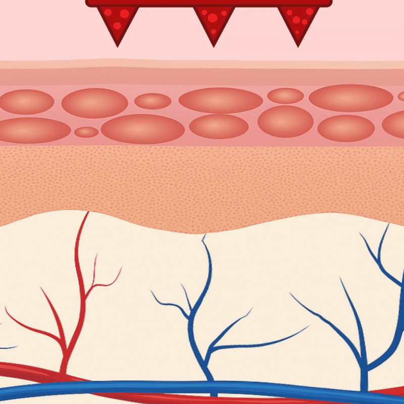 Er durchdringt gezielt nur die oberste Hautbarriere (Stratum corneum), ohne Nerven oder Blutgefäße zu erreichen. ➡ Das bedeutet: keine Schmerzen, kein Bluten – nur eine präzise, tiefenwirksame Abgabe.