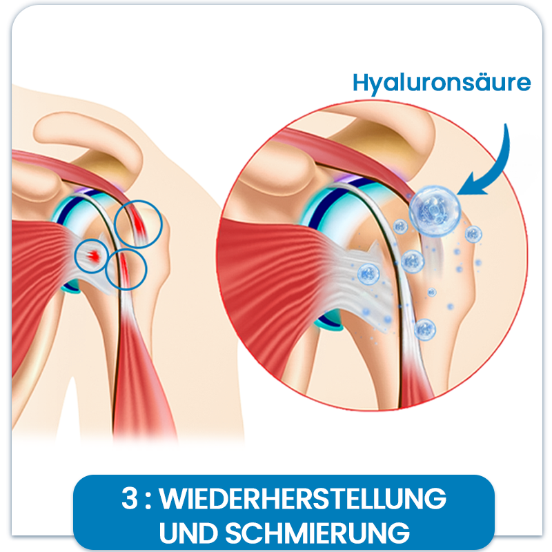 💧 Stellt Gelenkflüssigkeit wieder her—Hyaluronsäure füllt das Gelenkflüssigkeit auf und sorgt für eine geschmeidigere, angenehmere Bewegung.