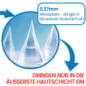 Überhaupt nicht. Die Mikrodarts sind ultra-dünn — sogar feiner als ein Haar. Sie sind kaum spürbar und lösen sich sanft in der obersten Hautschicht auf, ohne Nerven zu berühren oder Schmerzen zu verursachen.