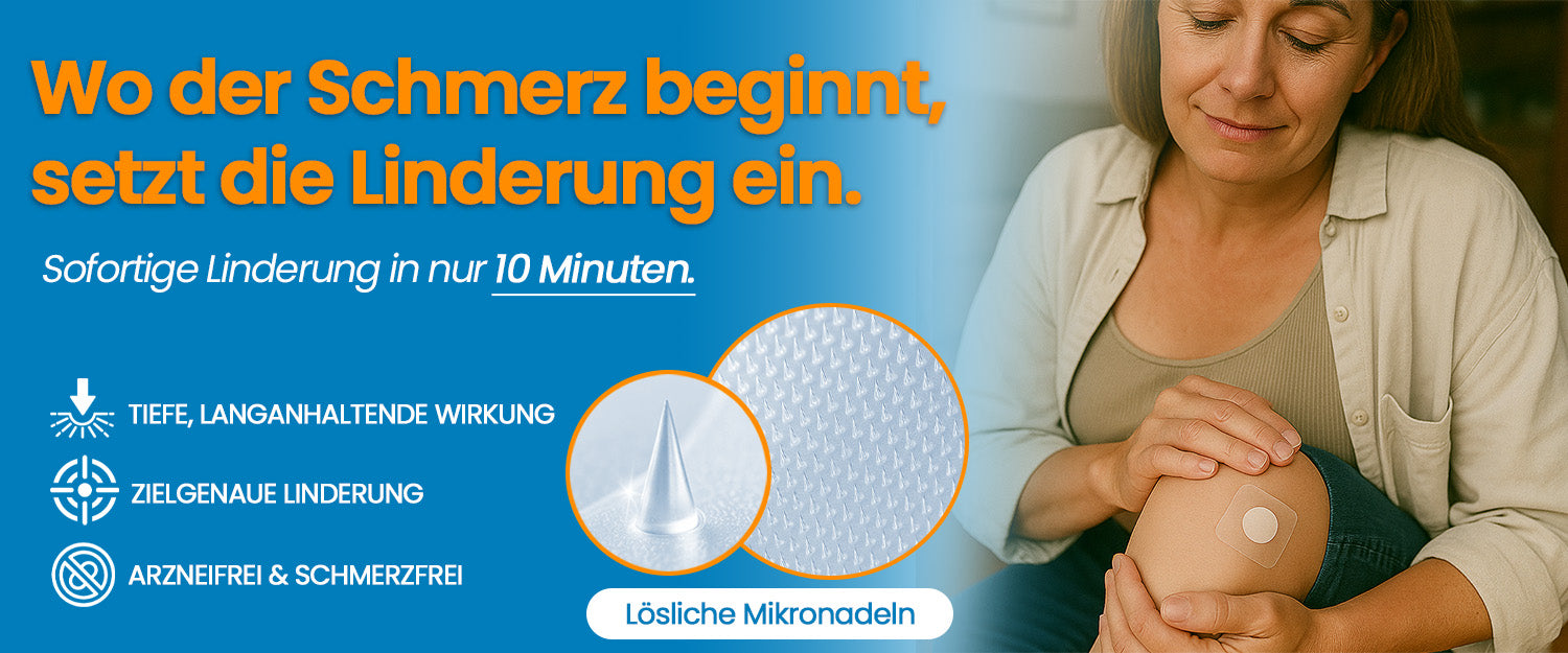 Mikronadeln lösen sich schnell in der Haut auf und transportieren die aktiven Inhaltsstoffe direkt an die schmerzende Stelle — ohne Nadeln, ohne Chaos, nur präzise.