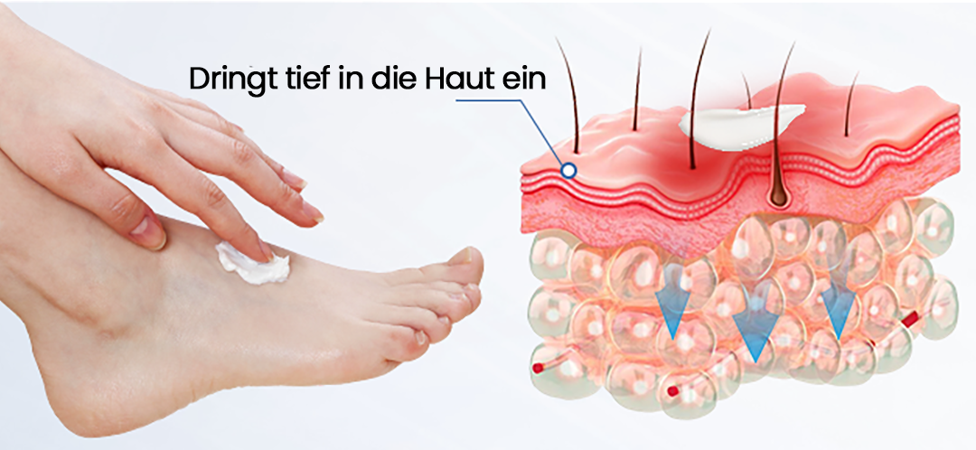 Diese Creme wurde speziell für die tägliche Pflege bei diabetischer Haut entwickelt —besonders bei trockenen, rissigen Füßen, Druckstellen, Spannungsgefühl und Hautreizungen.